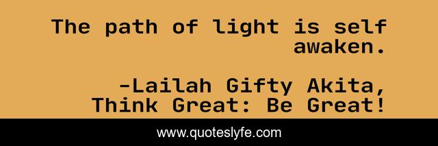 "Lailah Gifty Akita, Think Great: Be Great! Quotes." Quoteslyfe.com, 2025. Fri. 05 Dec. 2025. <https://www.quoteslyfe.com/quote/The-path-of-light-is-self-awaken-118825>.