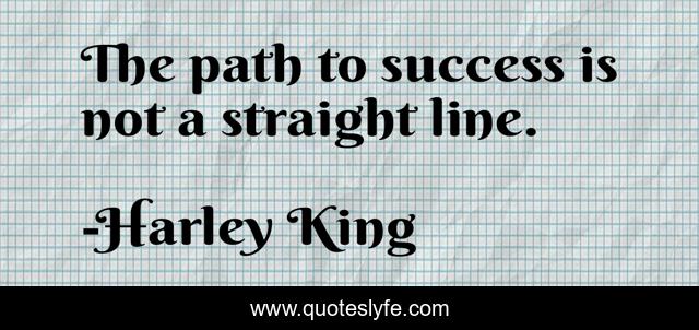 This page presents the quote "The path to success is not a straight line.". Author of this quote is Harley King. This quote is about path, success,.