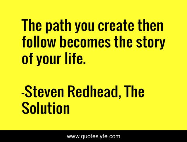 This page presents the quote "The path you create then follow becomes the story of your life.". Author of this quote is Steven Redhead, The Solution. This quote is about follow, create, life, story, path,.
