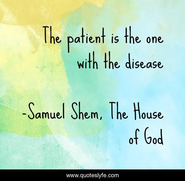 "Samuel Shem, The House of God Quotes." Quoteslyfe.com, 2025. Sat. 06 Dec. 2025. <https://www.quoteslyfe.com/quote/The-patient-is-the-one-with-the-243174>.