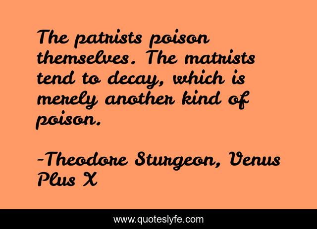 "Theodore Sturgeon, Venus Plus X Quotes." Quoteslyfe.com, 2025. Fri. 05 Dec. 2025. <https://www.quoteslyfe.com/quote/The-patrists-poison-themselves-The-matrists-tend-101593>.
