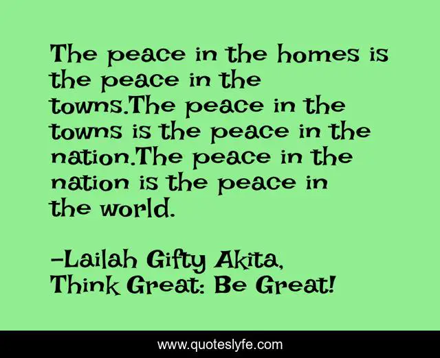 "Lailah Gifty Akita, Think Great: Be Great! Quotes." Quoteslyfe.com, 2025. Sat. 06 Dec. 2025. <https://www.quoteslyfe.com/quote/The-peace-in-the-homes-is-the-73791>.