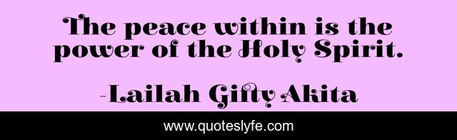 This page presents the quote "The peace within is the power of the Holy Spirit.". Author of this quote is Lailah Gifty Akita. This quote is about confidence, peace, christian, positive, motivational, answers-to-prayers, optimistic, praying, holy-spirit,.