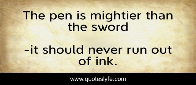This page presents the quote "The pen is mightier than the sword". Author of this quote is it should never run out of ink.. .