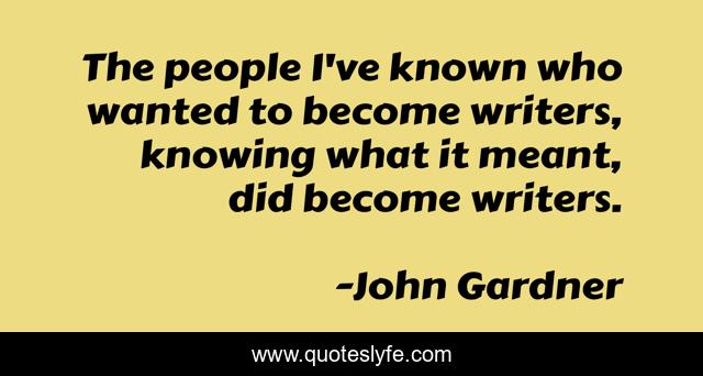 This page presents the quote "The people I've known who wanted to become writers, knowing what it meant, did become writers.". Author of this quote is John Gardner. This quote is about learning, writing,.
