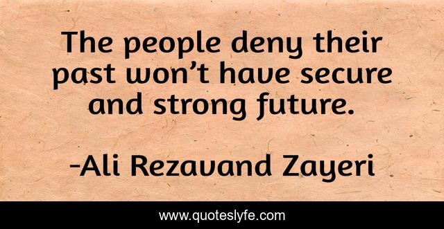 This page presents the quote "The people deny their past won’t have secure and strong future.". Author of this quote is Ali Rezavand Zayeri. This quote is about people, past, future, orginality, strong, roots,.
