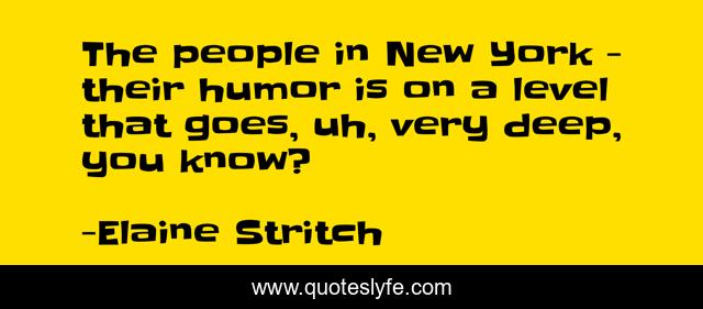 This page presents the quote "The people in New York - their humor is on a level that goes, uh, very deep, you know?". Author of this quote is Elaine Stritch. This quote is about new york, deep, people,.