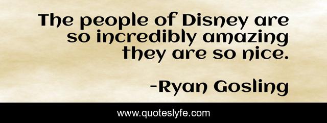 This page presents the quote "The people of Disney are so incredibly amazing they are so nice.". Author of this quote is Ryan Gosling. This quote is about incredibly, people, nice,.