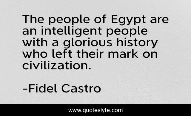 This page presents the quote "The people of Egypt are an intelligent people with a glorious history who left their mark on civilization.". Author of this quote is Fidel Castro. This quote is about egypt, intelligent, people,.