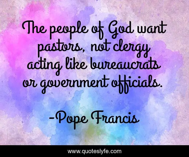 This page presents the quote "The people of God want pastors, not clergy acting like bureaucrats or government officials.". Author of this quote is Pope Francis. This quote is about god, acting, people,.