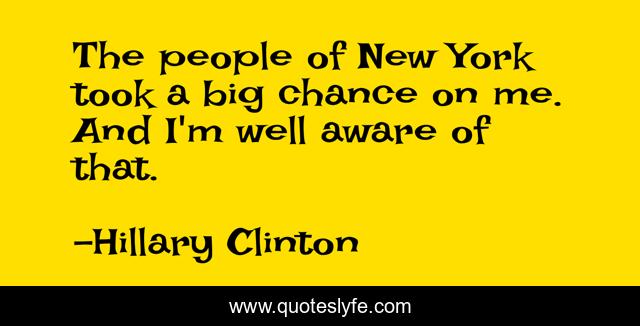This page presents the quote "The people of New York took a big chance on me. And I'm well aware of that.". Author of this quote is Hillary Clinton. This quote is about me, new york, people,.
