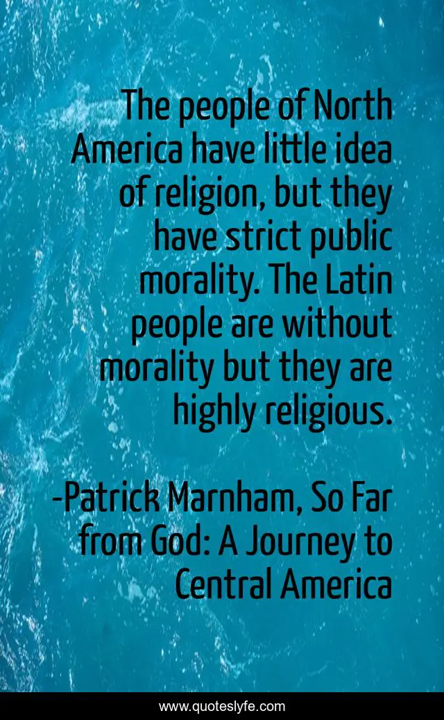 This page presents the quote "The people of North America have little idea of religion, but they have strict public morality. The Latin people are without morality but they are highly religious.". Author of this quote is Patrick Marnham, So Far from God: A Journey to Central America. .