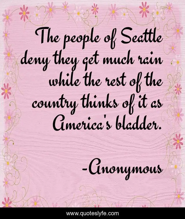 This page presents the quote "The people of Seattle deny they get much rain while the rest of the country thinks of it as America's bladder.". Author of this quote is Anonymous. This quote is about travel, cities,.