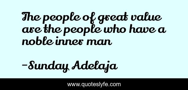 This page presents the quote "The people of great value are the people who have a noble inner man". Author of this quote is Sunday Adelaja. This quote is about noble, great, people, value, inner, man,.