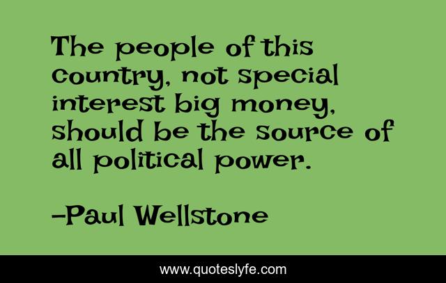This page presents the quote "The people of this country, not special interest big money, should be the source of all political power.". Author of this quote is Paul Wellstone. This quote is about political, power, people,.