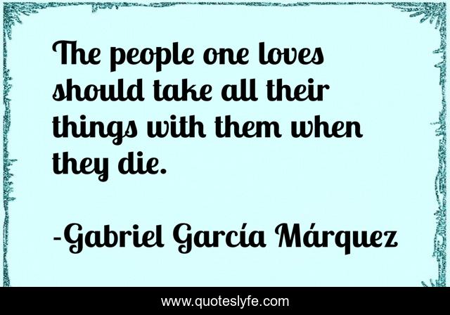 This page presents the quote "The people one loves should take all their things with them when they die.". Author of this quote is Gabriel García Márquez. This quote is about death, love-in-the-time-of-cholera,.