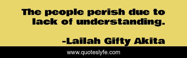 This page presents the quote "The people perish due to lack of understanding.". Author of this quote is Lailah Gifty Akita. This quote is about ignorance, people, perish, learning, understanding,.