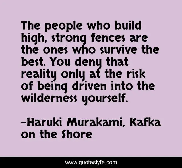 "Haruki Murakami, Kafka on the Shore Quotes." Quoteslyfe.com, 2025. Fri. 05 Dec. 2025. <https://www.quoteslyfe.com/quote/The-people-who-build-high-strong-fences-196194>.