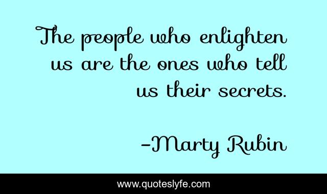This page presents the quote "The people who enlighten us are the ones who tell us their secrets.". Author of this quote is Marty Rubin. This quote is about secrets, truthfulness, enlightenment, honesty, candor,.