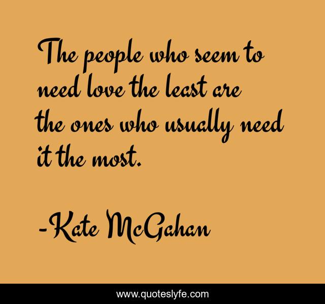 This page presents the quote "The people who seem to need love the least are the ones who usually need it the most.". Author of this quote is Kate McGahan. This quote is about need, love, affection,.
