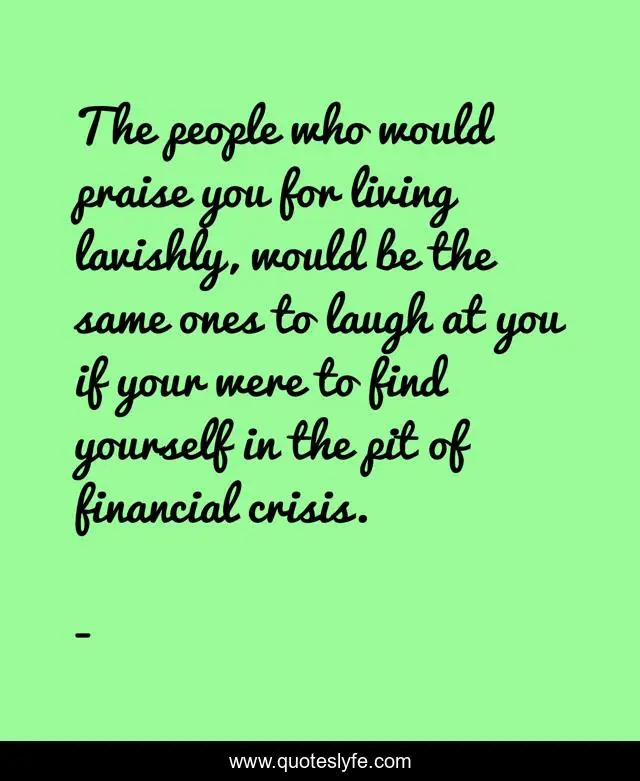 This page presents the quote "The people who would praise you for living lavishly, would be the same ones to laugh at you if your were to find yourself in the pit of financial crisis.". Author of this quote is . This quote is about edmond-mbiaka, people-who-praise-you, financial-crisis, praise, living-lavishly,.