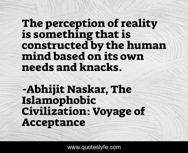 "Abhijit Naskar, The Islamophobic Civilization: Voyage of Acceptance Quotes." Quoteslyfe.com, 2025. Fri. 05 Dec. 2025. <https://www.quoteslyfe.com/quote/The-perception-of-reality-is-something-that-42458>.