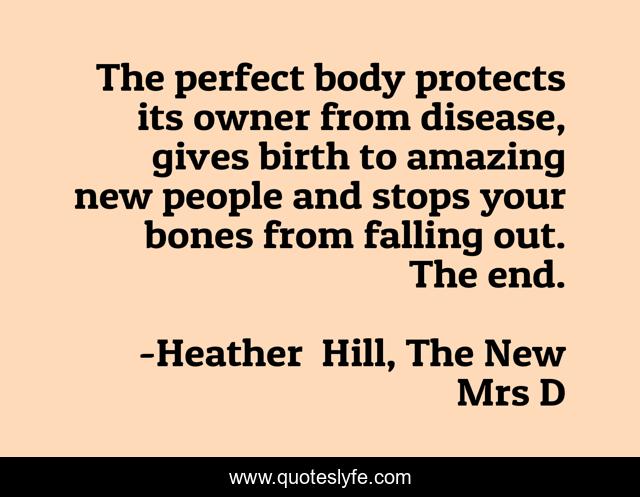 "Heather Hill, The New Mrs D Quotes." Quoteslyfe.com, 2025. Tue. 09 Dec. 2025. <https://www.quoteslyfe.com/quote/The-perfect-body-protects-its-owner-from-142887>.