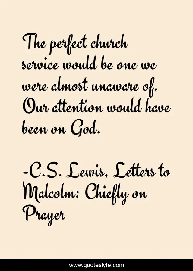 "C.S. Lewis, Letters to Malcolm: Chiefly on Prayer Quotes." Quoteslyfe.com, 2025. Sat. 06 Dec. 2025. <https://www.quoteslyfe.com/quote/The-perfect-church-service-would-be-one-193824>.