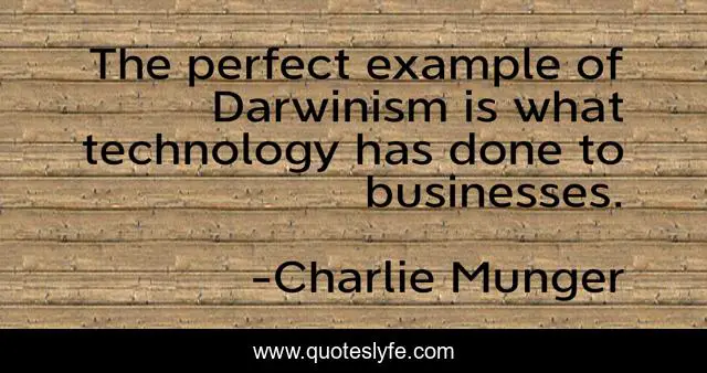 This page presents the quote "The perfect example of Darwinism is what technology has done to businesses.". Author of this quote is Charlie Munger. This quote is about perfect, done, example,.