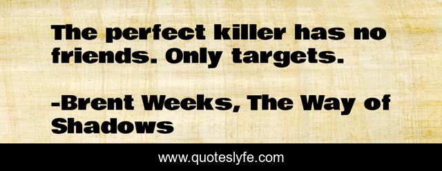 This page presents the quote "The perfect killer has no friends. Only targets.". Author of this quote is Brent Weeks, The Way of Shadows. .