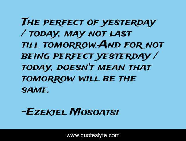 This page presents the quote "The perfect of yesterday / today, may not last till tomorrow.And for not being perfect yesterday / today, doesn't mean that tomorrow will be the same.". Author of this quote is Ezekiel Mosoatsi. .