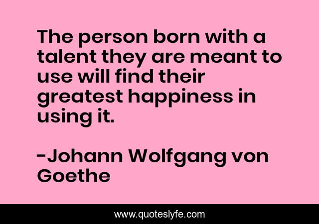 This page presents the quote "The person born with a talent they are meant to use will find their greatest happiness in using it.". Author of this quote is Johann Wolfgang von Goethe. This quote is about talent, writing,.