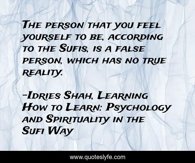 This page presents the quote "The person that you feel yourself to be, according to the Sufis, is a false person, which has no true reality.". Author of this quote is Idries Shah, Learning How to Learn: Psychology and Spirituality in the Sufi Way. This quote is about evolution, knowledge, sufi, sufism, learning, sufis,.
