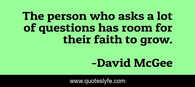 This page presents the quote "The person who asks a lot of questions has room for their faith to grow.". Author of this quote is David McGee. This quote is about discipleship, curiosity,.
