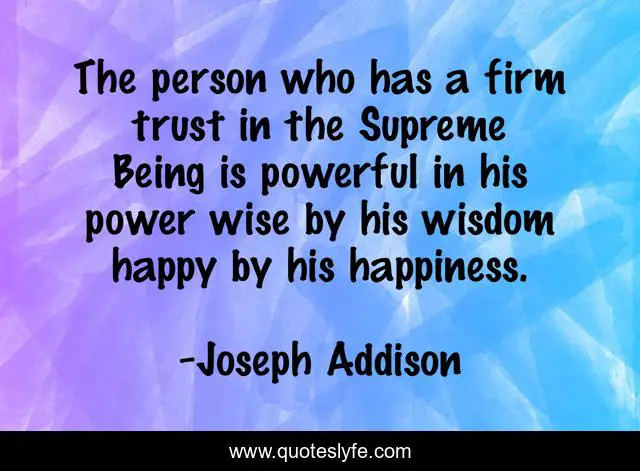 This page presents the quote "The person who has a firm trust in the Supreme Being is powerful in his power wise by his wisdom happy by his happiness.". Author of this quote is Joseph Addison. This quote is about faith, unity,.