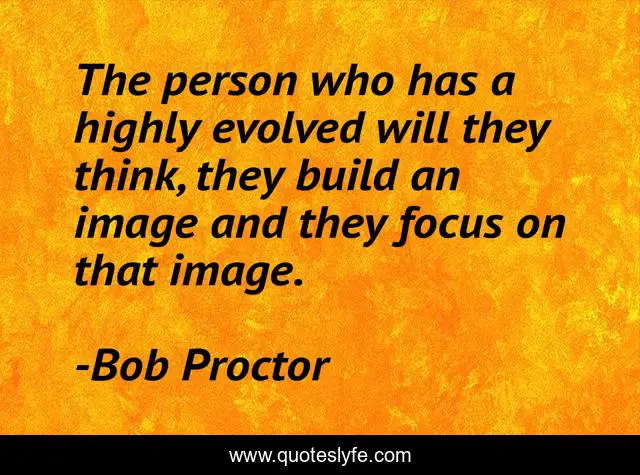 This page presents the quote "The person who has a highly evolved will they think, they build an image and they focus on that image.". Author of this quote is Bob Proctor. This quote is about personal-development, personal-growth, self-help,.