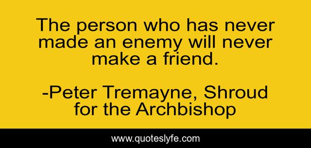 This page presents the quote "The person who has never made an enemy will never make a friend.". Author of this quote is Peter Tremayne, Shroud for the Archbishop. This quote is about enemy, friendship, friend,.