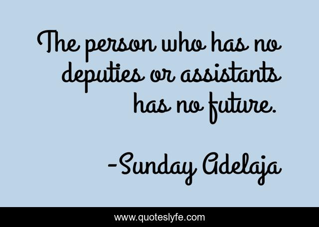 This page presents the quote "The person who has no deputies or assistants has no future.". Author of this quote is Sunday Adelaja. This quote is about deputies, church, team,.