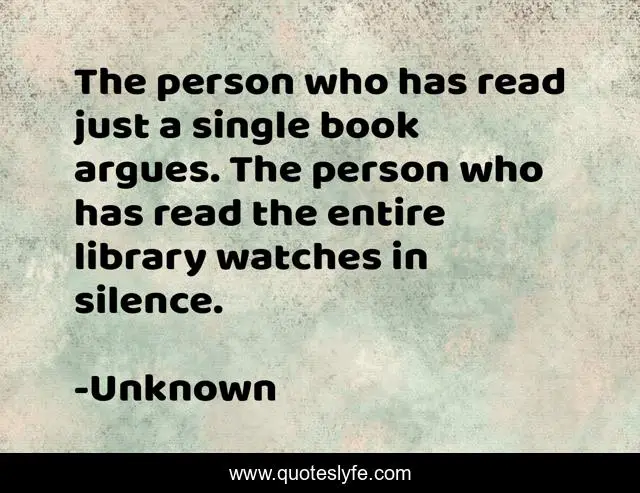This page presents the quote "The person who has read just a single book argues. The person who has read the entire library watches in silence.". Author of this quote is Unknown. This quote is about read, argue, library, book, silence,.