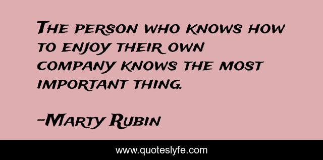 This page presents the quote "The person who knows how to enjoy their own company knows the most important thing.". Author of this quote is Marty Rubin. This quote is about enjoyment, importance, solitude, pleasure,.