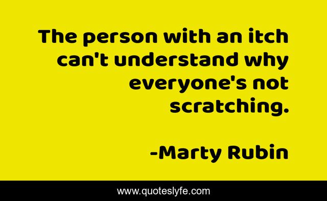 This page presents the quote "The person with an itch can't understand why everyone's not scratching.". Author of this quote is Marty Rubin. This quote is about desire, pain, projection, subjectivity,.