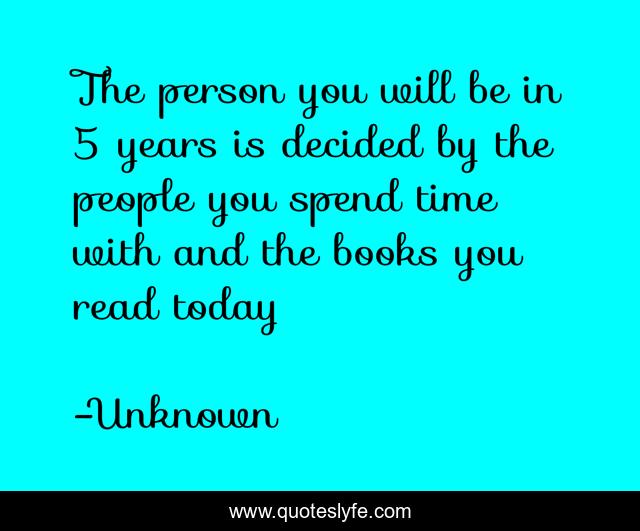 This page presents the quote "The person you will be in 5 years is decided by the people you spend time with and the books you read today". Author of this quote is Unknown. This quote is about future, success, people,.
