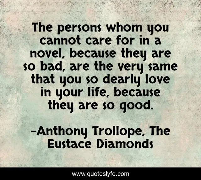 This page presents the quote "The persons whom you cannot care for in a novel, because they are so bad, are the very same that you so dearly love in your life, because they are so good.". Author of this quote is Anthony Trollope, The Eustace Diamonds. This quote is about bad-people, good, characters,.