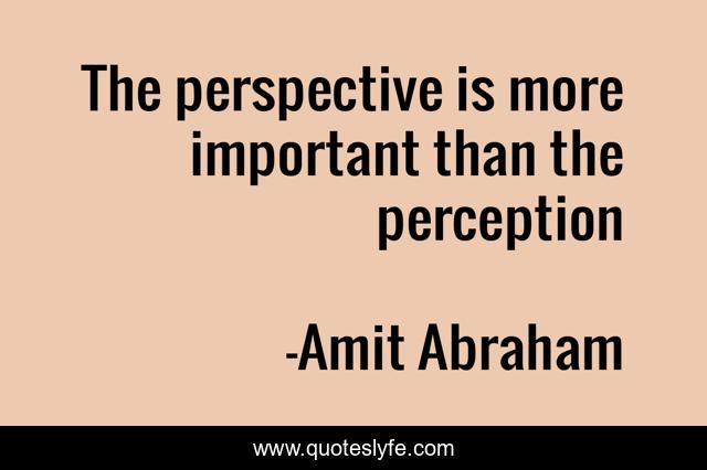 This page presents the quote "The perspective is more important than the perception". Author of this quote is Amit Abraham. This quote is about perception, perspective,.