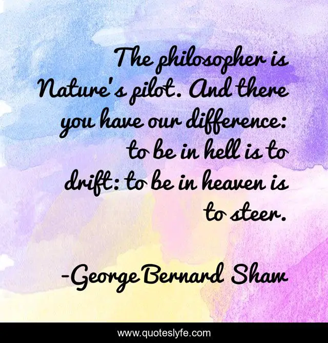 This page presents the quote "The philosopher is Nature's pilot. And there you have our difference: to be in hell is to drift: to be in heaven is to steer.". Author of this quote is George Bernard Shaw. .