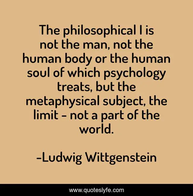 This page presents the quote "The philosophical I is not the man, not the human body or the human soul of which psychology treats, but the metaphysical subject, the limit - not a part of the world.". Author of this quote is Ludwig Wittgenstein. This quote is about self, the-philosophical-subject,.