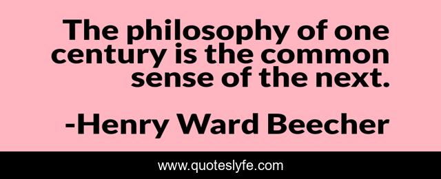 This page presents the quote "The philosophy of one century is the common sense of the next.". Author of this quote is Henry Ward Beecher. .
