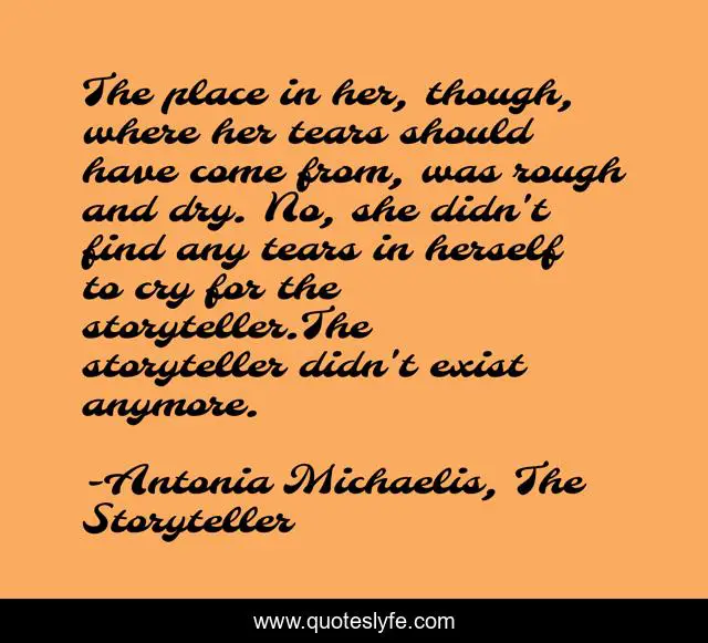 The place in her, though, where her tears should have come from, was rough and dry. No, she didn't find any tears in herself to cry for the storyteller.The storyteller didn't exist anymore.