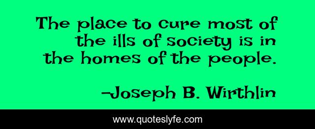This page presents the quote "The place to cure most of the ills of society is in the homes of the people.". Author of this quote is Joseph B. Wirthlin. .