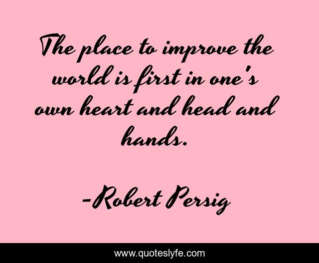 This page presents the quote "The place to improve the world is first in one's own heart and head and hands.". Author of this quote is Robert Persig. .